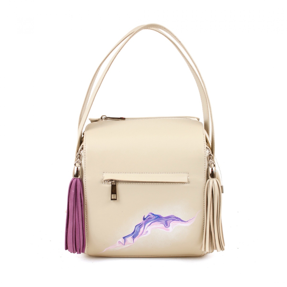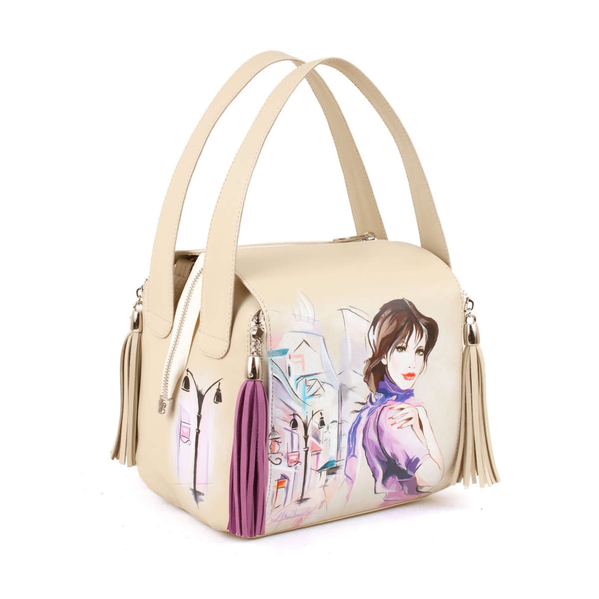 • Эксклюзивный рисунок — профессиональные художники расписывают кожаные женские квадратные сумки акриловыми красками, как холст. Каждая роспись уникальна.