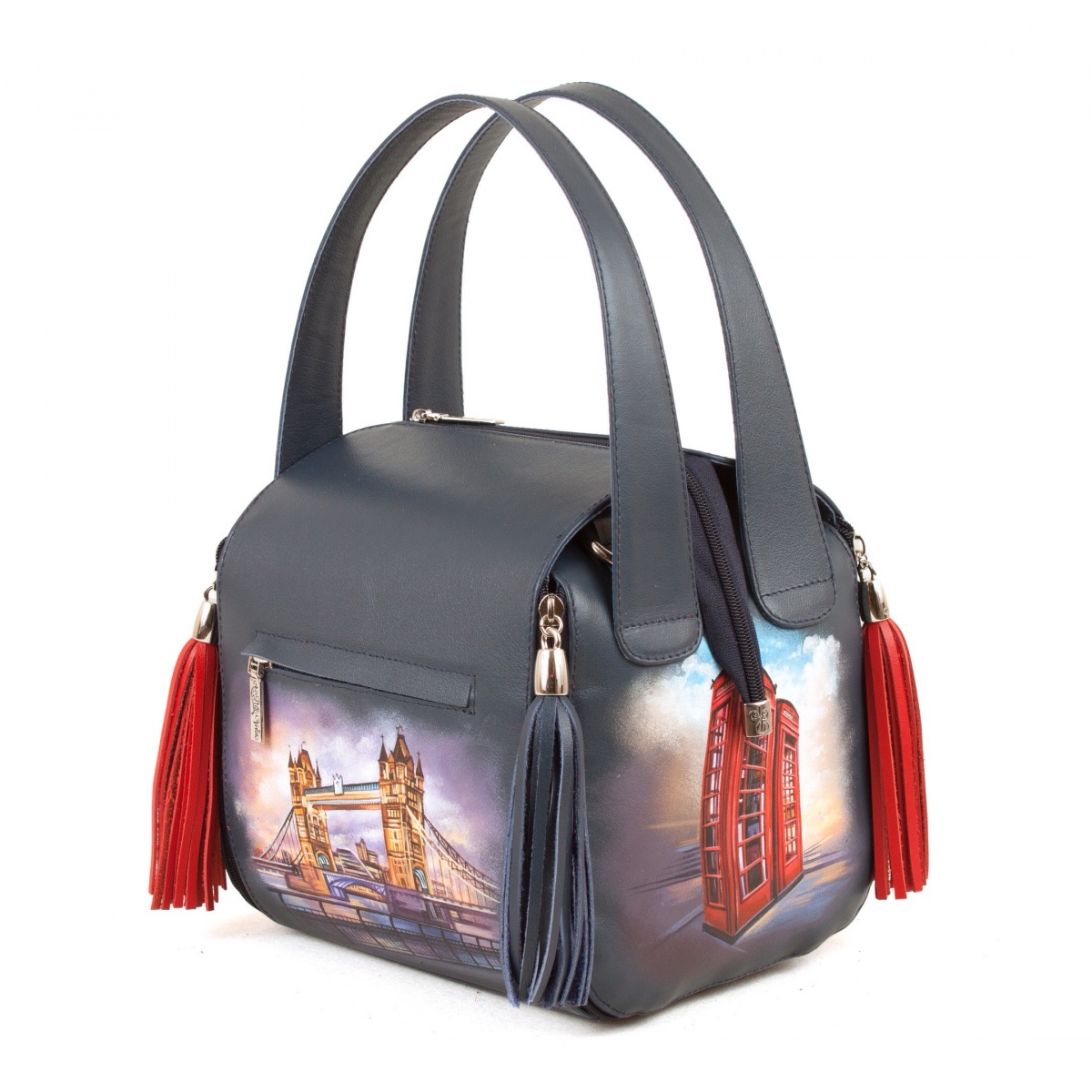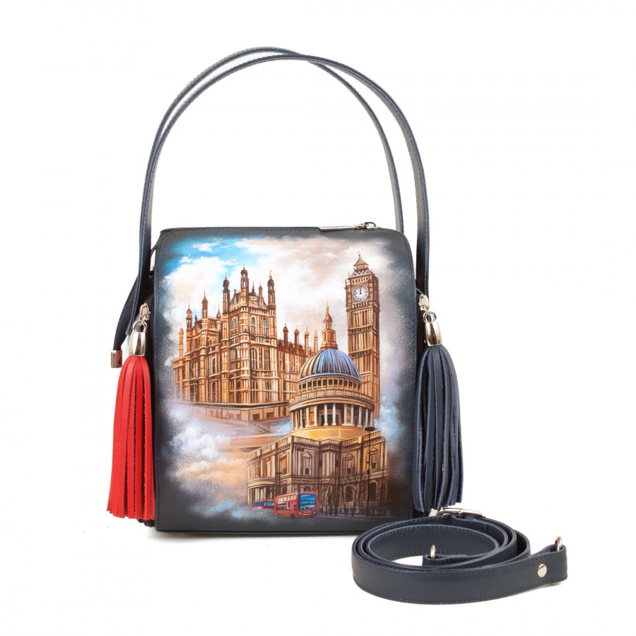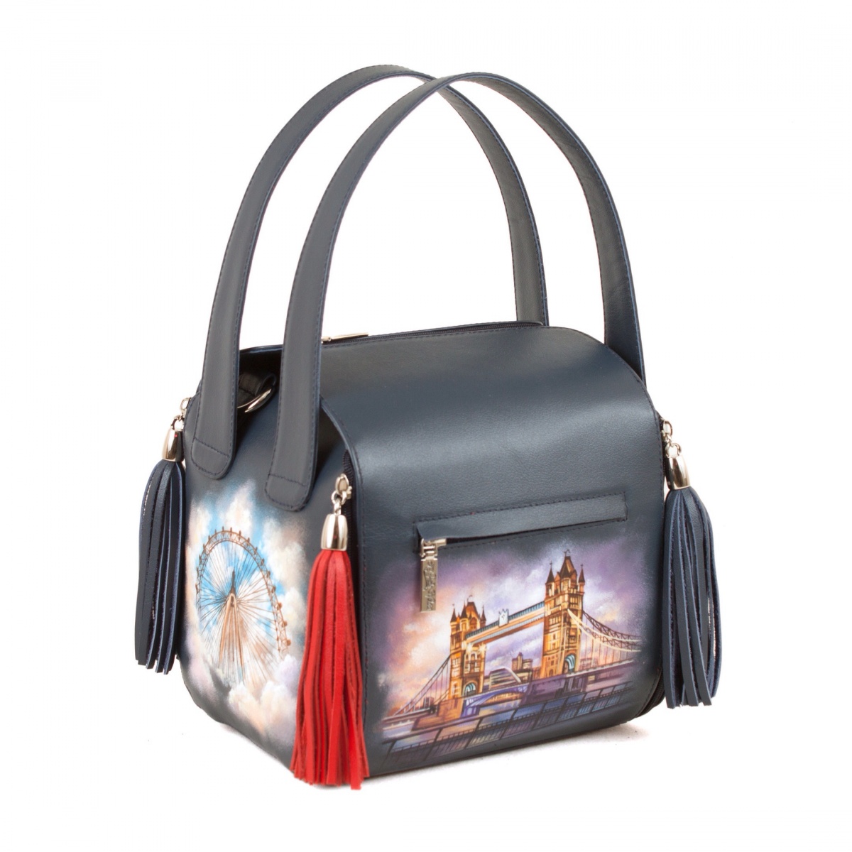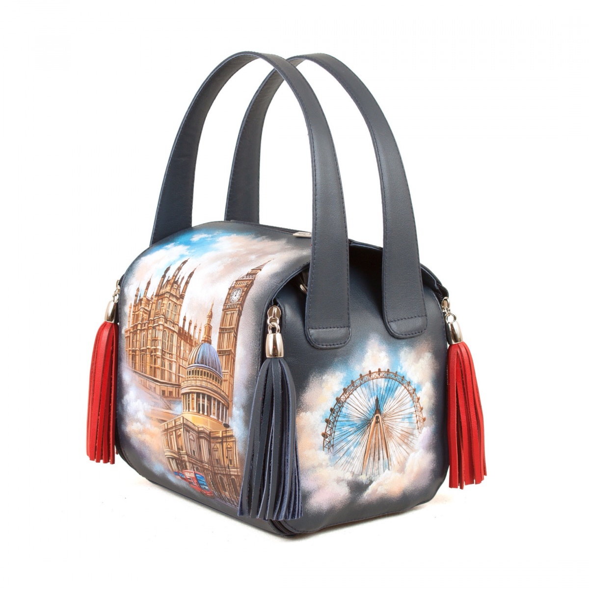 Квадратная сумка с короткими ручками с росписью "Лондон" ручной работы на заказ | Купить в Sumnizza