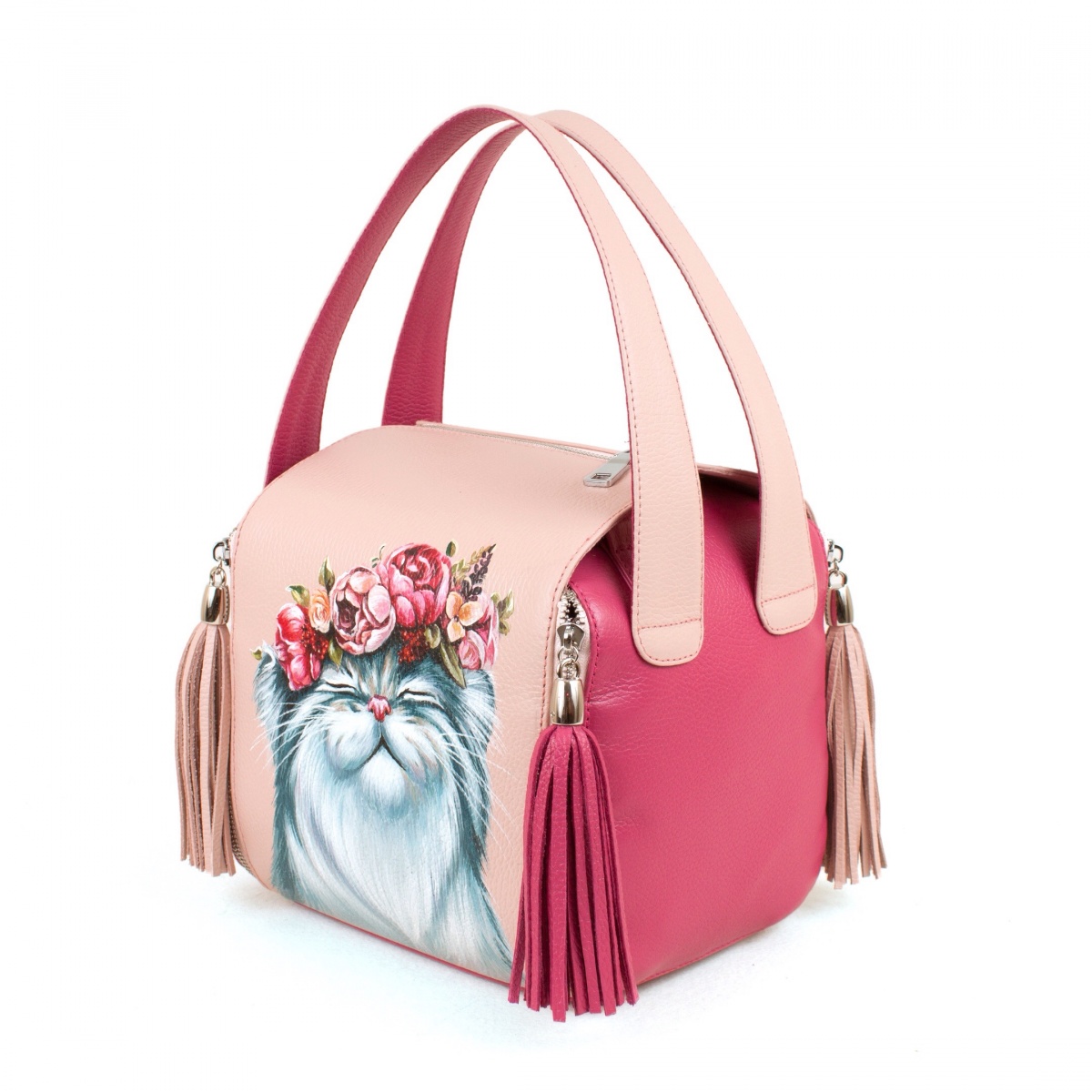• Эксклюзивный рисунок — профессиональные художники расписывают кожаные женские квадратные сумки акриловыми красками, как холст. Каждая роспись уникальна.