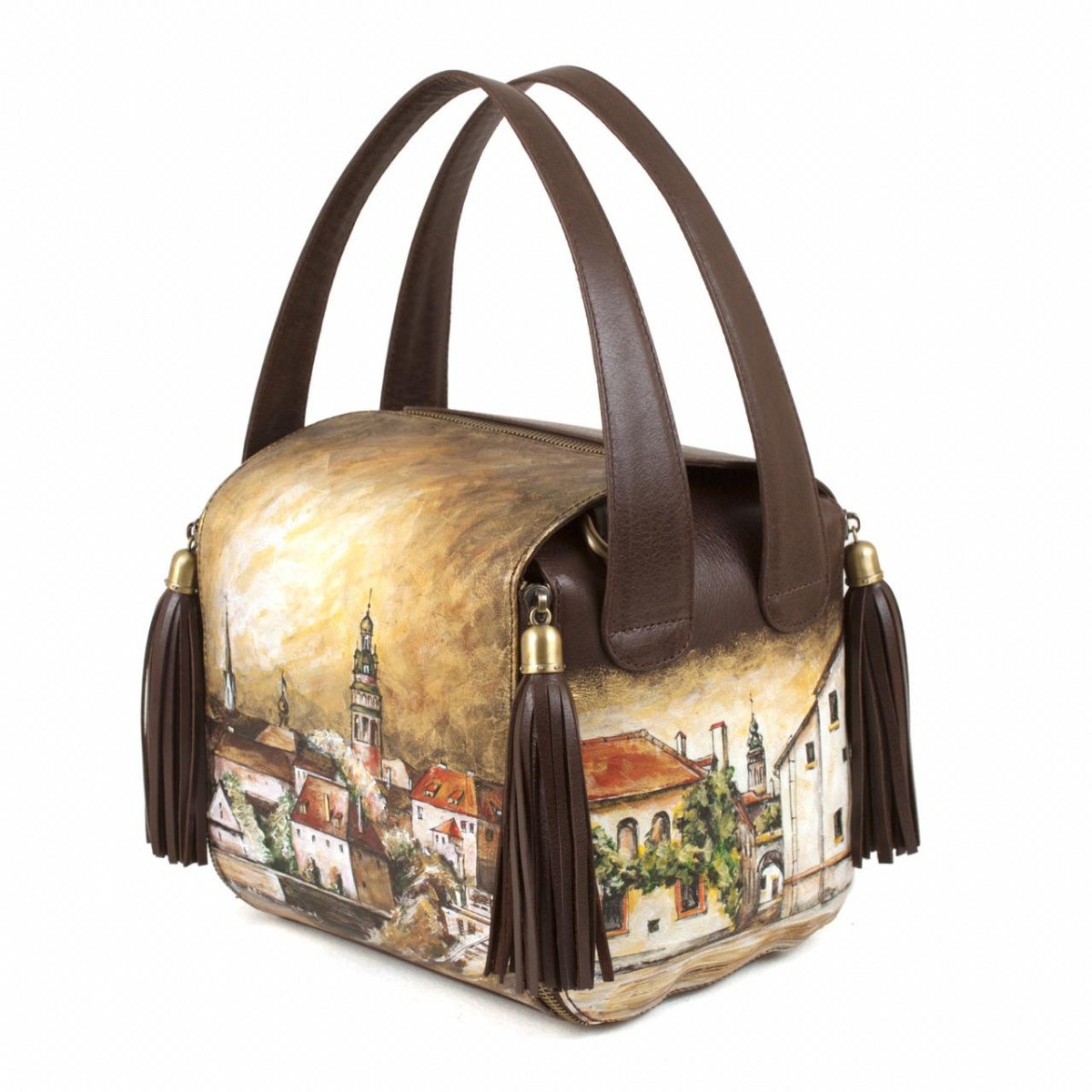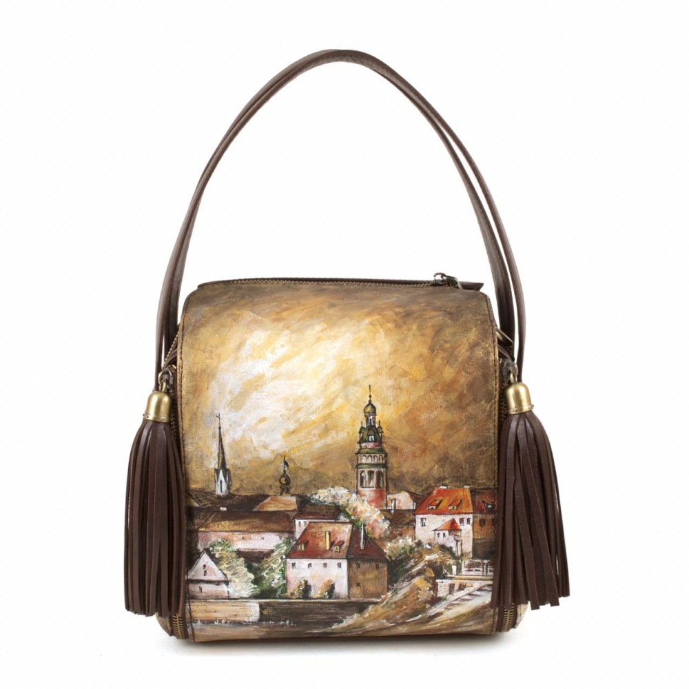 Маленькая квадратная сумка с рисунком по коже "Старый город" ручной работы на заказ | Купить в Sumnizza