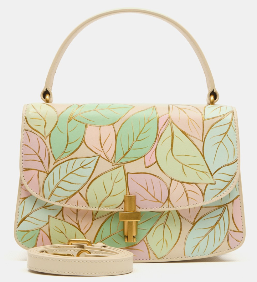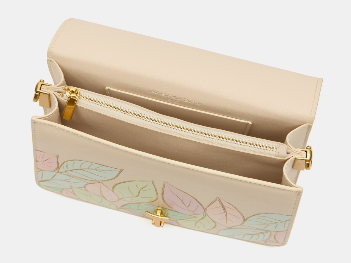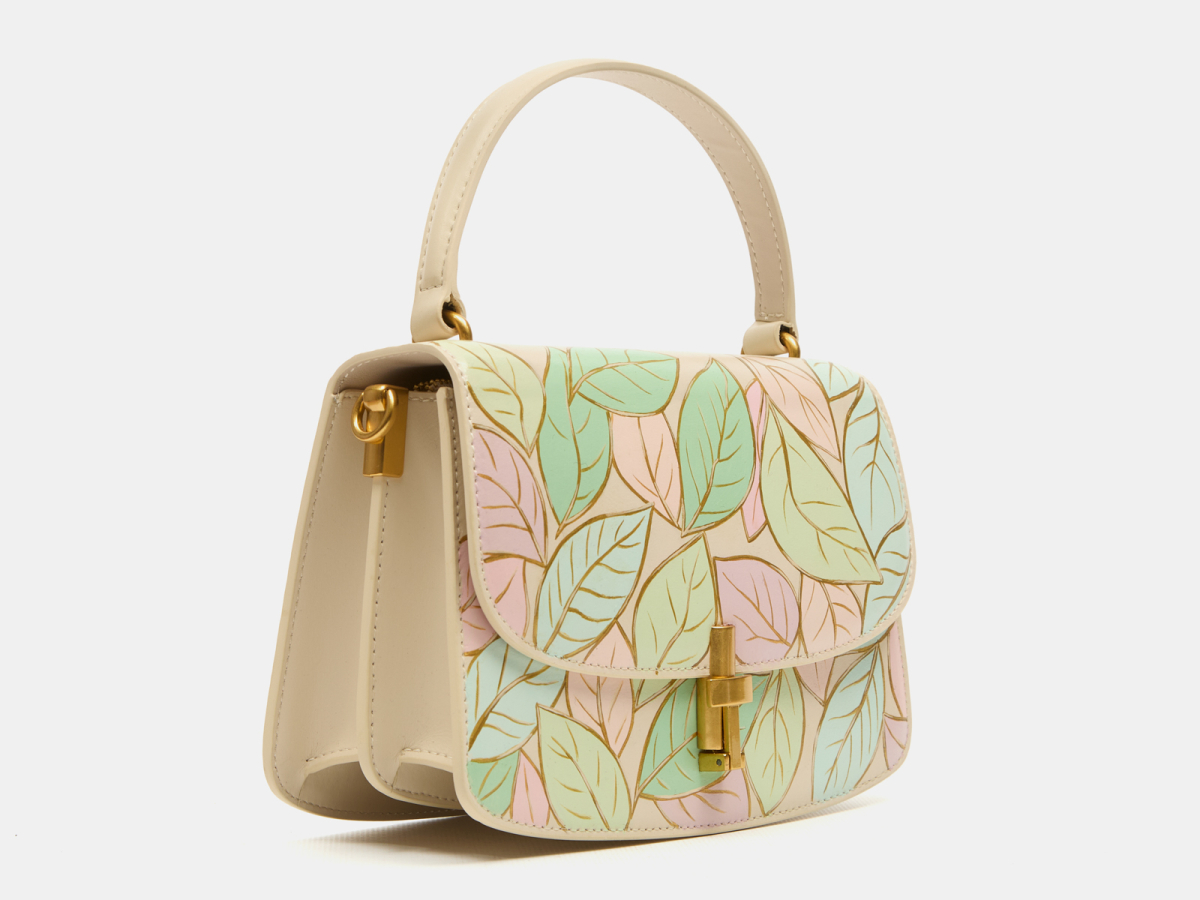 Квадратная сумка из натуральной кожи с рисунком ручной работы «Нежная весна»